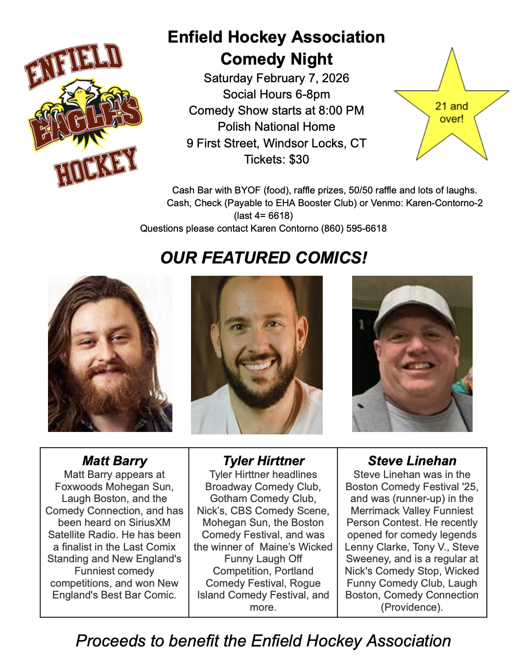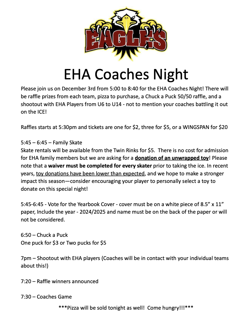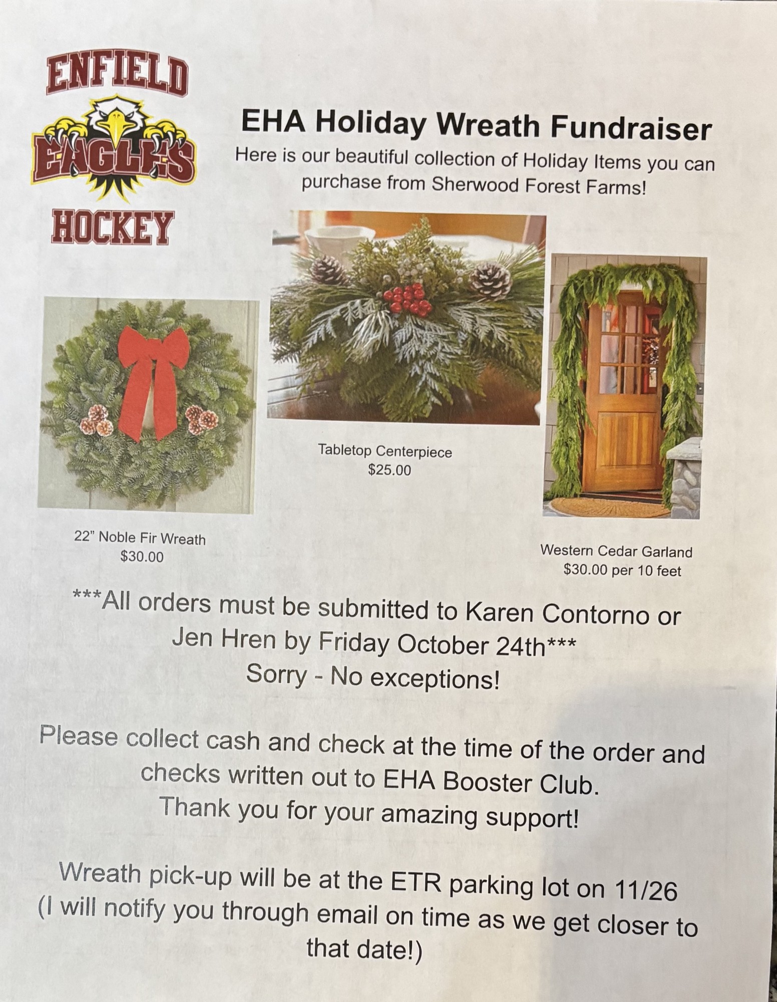 My name is Karen Contorno and I am the Booster Club President! I am excited about fundraising and looking forward to supporting the EHA for some time to come! Throughout the course of the year, our main focus will be fundraising for our players for their end of the season activities or gifts. In order to facilitate this, here are several activities/events we manage both during and outside of our season: